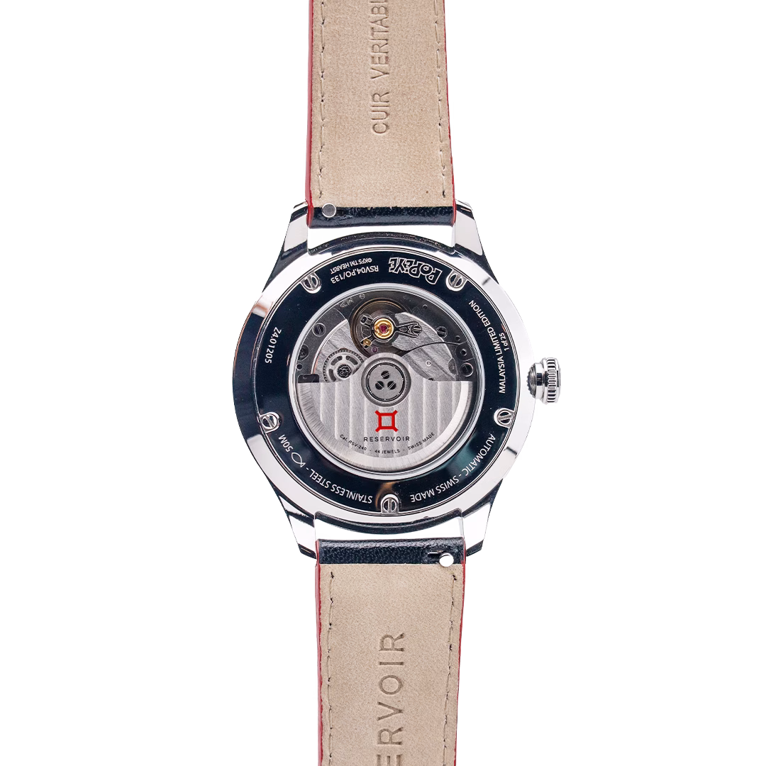 The Reservoir x Popeye Malaysia Edition, is a 41.5mm stainless steel timepiece powered by an automatic movement with a 56-hour power reserve, featuring jumping hour and retrograde minute functions that echo the dynamic rhythm of badminton. Its bright white dial, contrasted by a vibrant backdrop, showcases a hand-painted Popeye mid-match with racket in hand, paired with a sleek black nubuck strap. Engraved “Malaysia Edition” on the case back and priced at MYR 21,800, this Swiss Watch exclusive is limited to just 25 pieces worldwide, celebrating Swiss Watch’s 25th anniversary with boldness, adventure, and collectible rarity. Presented in a bespoke collector’s box, designed to complement its sporty elegance, the Reservoir Badminton Watch Limited Edition is more than just a timepiece, it’s a celebration of heritage, precision, and passion.