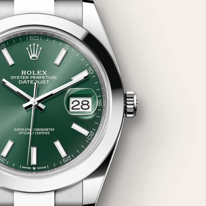 The sunray finish creates delicate light reflections on many dials in the Oyster Perpetual collection. It is obtained using masterful brushing techniques that create grooves running outwards from the centre of the dial. Light is diffused consistently along each engraving, creating a characteristic subtle glow that moves depending on the position of the wrist. Once the sunray finish has been completed, the dial colour is applied using Physical Vapour Deposition or electroplating. A light coat of varnish gives the dial its final look.