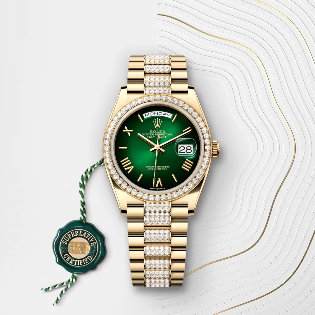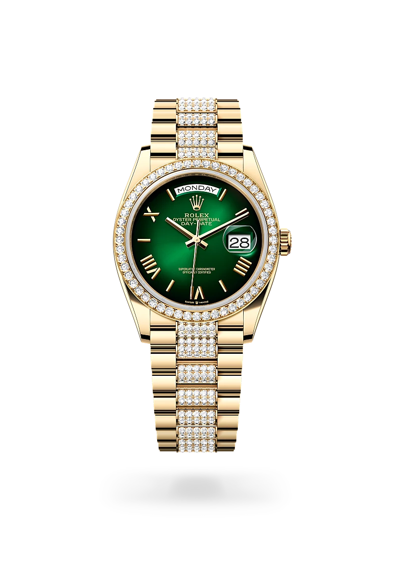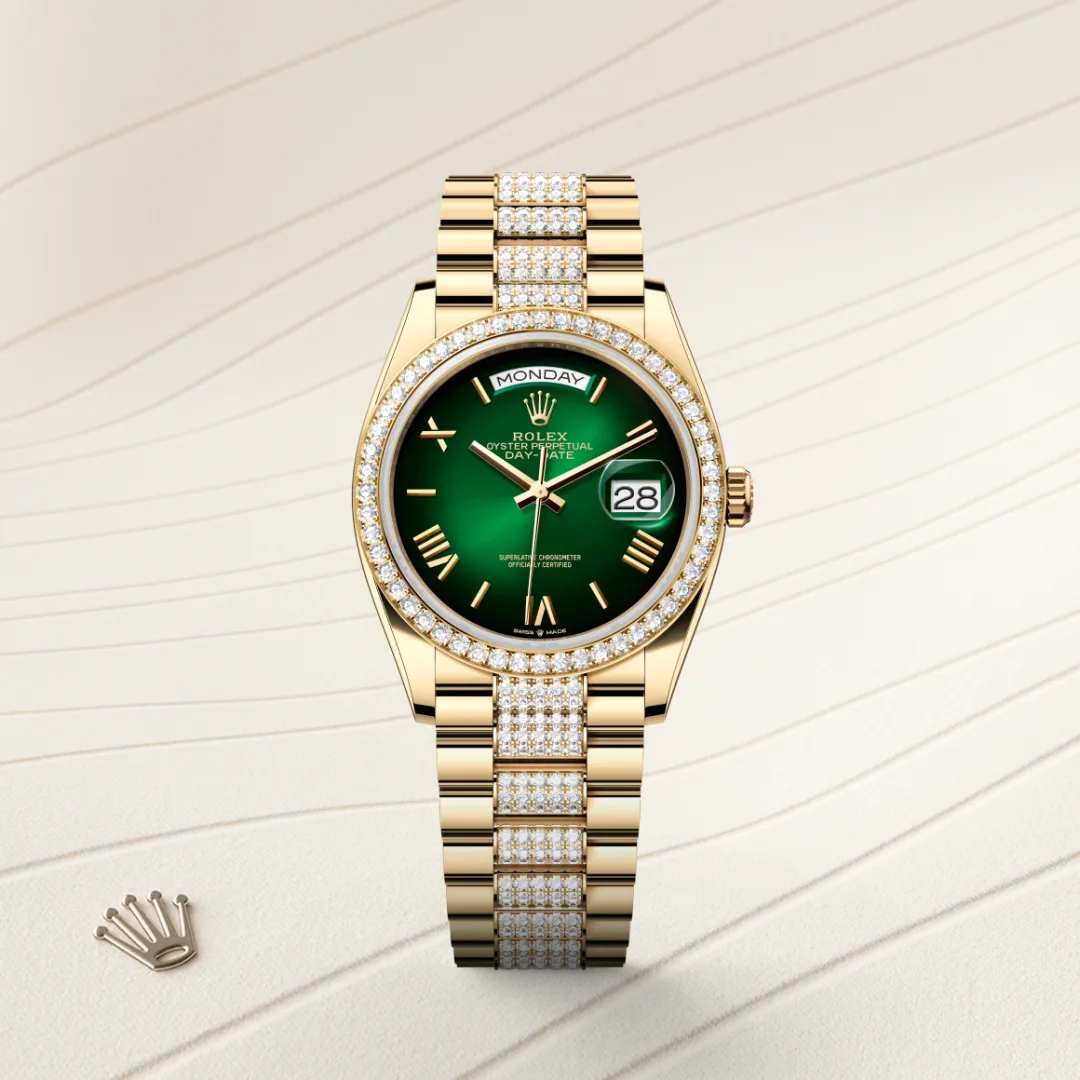 Rolex Day-Date 36 Oyster, 36 mm, yellow gold and diamonds M128348RBR-0069