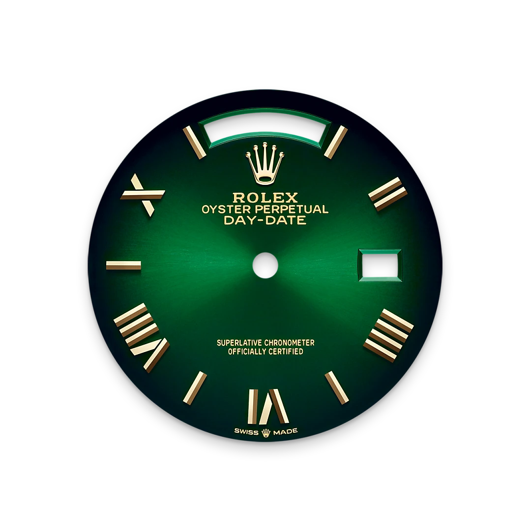 The ombré dial features a coloured surface at the centre, progresses to a deep black around the edge. This dial represents the continuity of a design that Rolex introduced in the 1980s and relaunched in 2019. The manufacture of these dials with a concentric gradient involves the application of black lacquer, a delicate operation overseen by a specialist whose task it is to ensure the harmonious transition from colour to darkness.