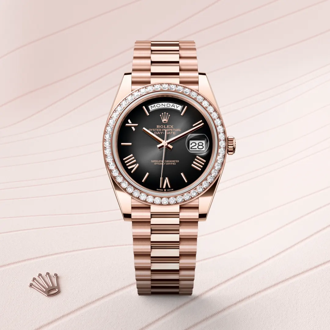 Rolex Day-Date 40 Oyster, 40 mm, Everose gold and diamonds M228345RBR-0025