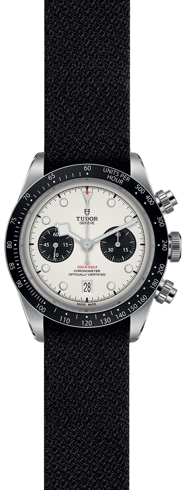 The Black Bay Chrono combines the heritage of divers? watches represented by the Black Bay family with the queen of the racetrack, the chronograph. The characteristics of the Black Bay collection are preserved in a steel case fitted with pushers inspired by the first generation of Tudor chronographs. A fixed bezel in circular satin-brushed steel with engraved tachymetric scale completes the face of this sporty chronograph.
