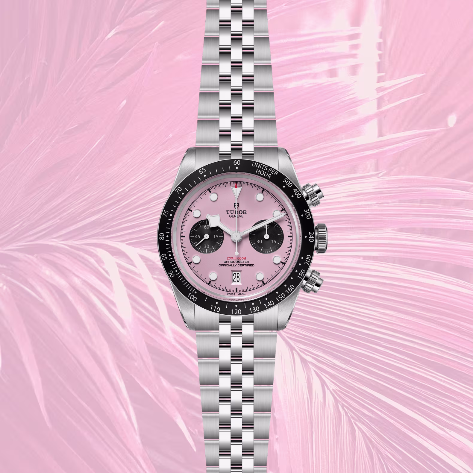 Inspired TUDOR’s daring ambassadors, this edition of the Black Bay Chrono is made for individuals who embrace standing out. Its striking pink dial may be unexpected, but challenging convention is deeply rooted in TUDOR’s identity. This uncompromising spirit is exactly what secured this standout design a place within the TUDOR lineup, a collection celebrated for its exclusive and daring timepieces.