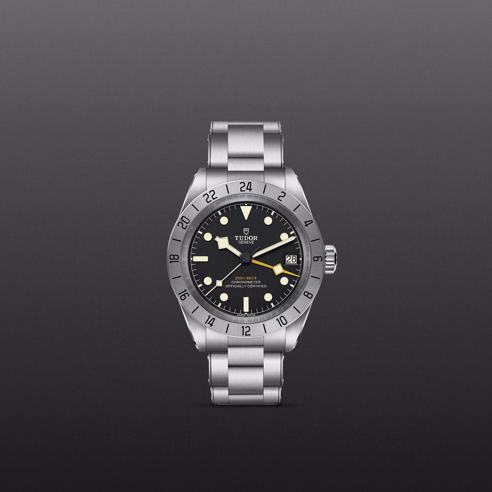 The Adventurers’ Black Bay, the Black Bay Pro is a technical model with a whole new aesthetic: a tool-watch designed for professional use. With a 39mm case and a fixed steel bezel the watch boasts a Manufacture Calibre with built-in GMT function.