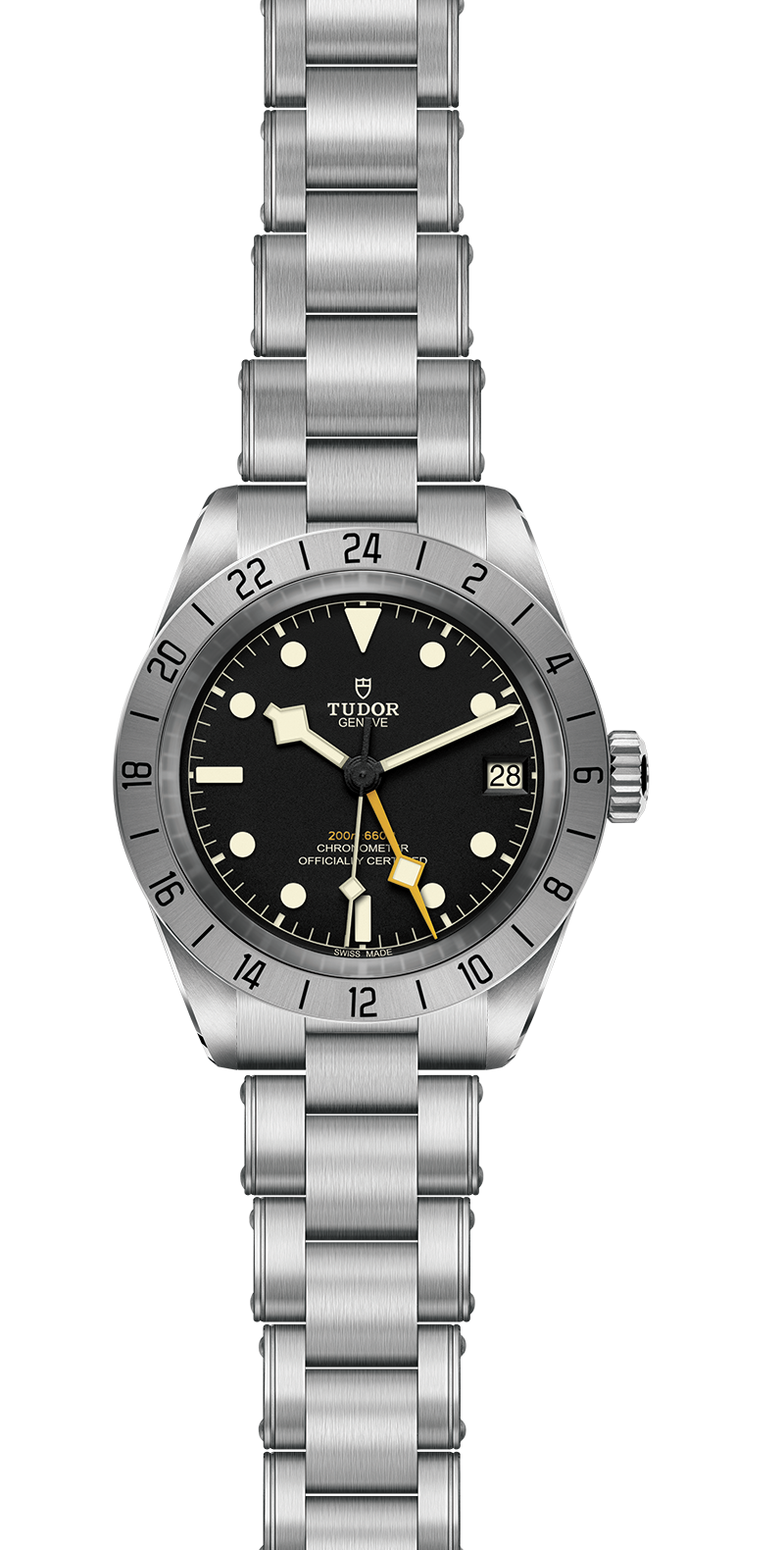 The Adventurers’ Black Bay, the Black Bay Pro is a technical model with a whole new aesthetic: a tool-watch designed for professional use. With a 39mm case and a fixed steel bezel the watch boasts a Manufacture Calibre with built-in GMT function.