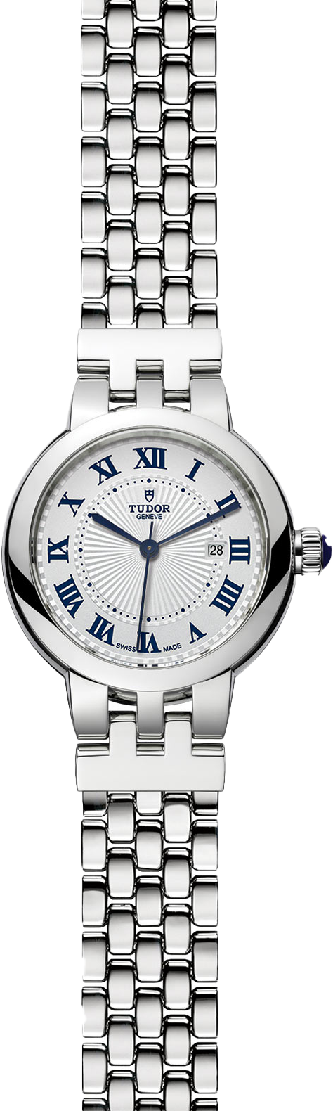 Available in three sizes, 26, 30 and 34 millimeters in diameter, it presents opaline and now “TUDOR Blue” dials with delicate decorations in relief, punctuated with Roman numerals or diamonds. Clair de Rose is fitted with a self-winding movement complete with date function and is available exclusively in stainless steel.