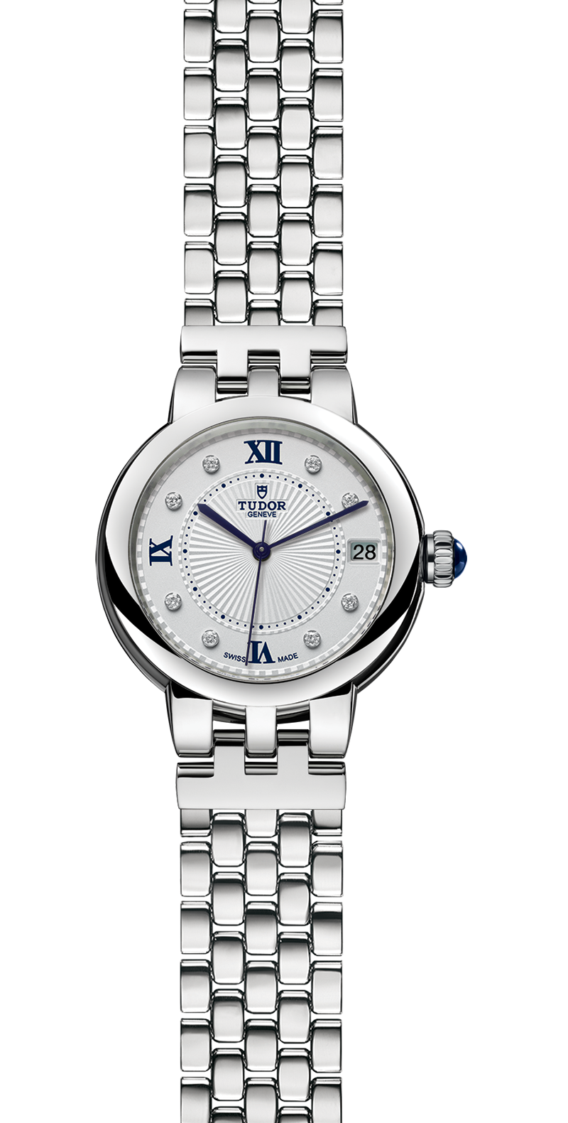 Available in three sizes, 26, 30 and 34 millimeters in diameter, it presents opaline and now “TUDOR Blue” dials with delicate decorations in relief, punctuated with Roman numerals or diamonds. Clair de Rose is fitted with a self-winding movement complete with date function and is available exclusively in stainless steel.