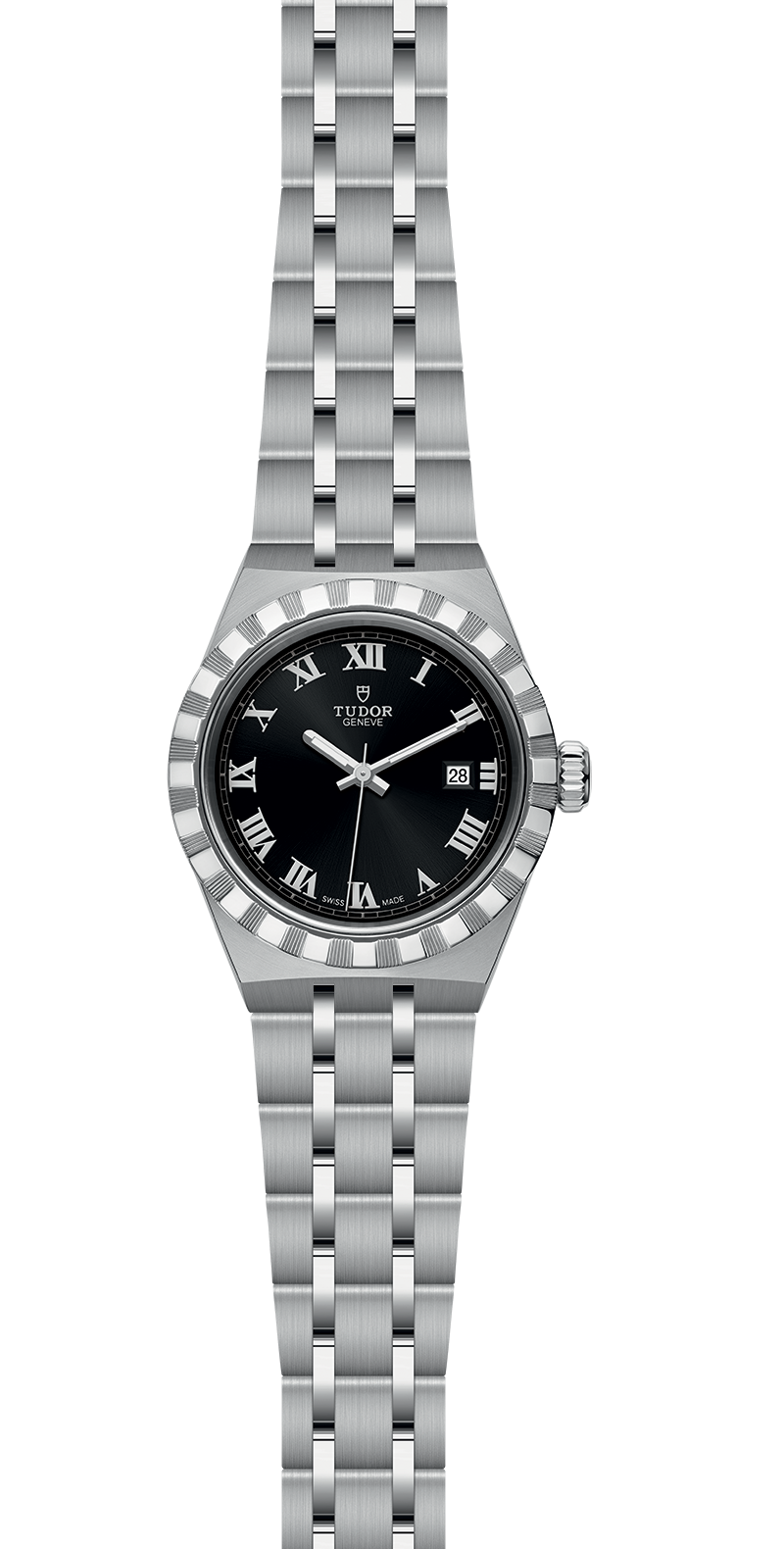 The Tudor Royal range is the epitome of balance between elegance and sportiness. The details of its design give it a unique personality, especially from its characteristic notched bezel with alternating surface polish and cut grooves. The integrated metal bracelet ensures an uninterrupted flow, starting from the case.
