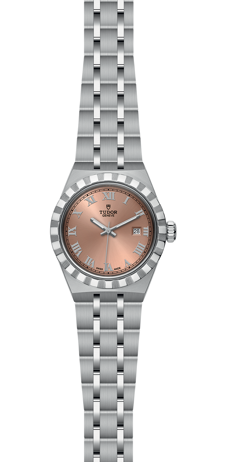 The Tudor Royal range is the epitome of balance between elegance and sportiness. The details of its design give it a unique personality, especially from its characteristic notched bezel with alternating surface polish and cut grooves. The integrated metal bracelet ensures an uninterrupted flow, starting from the case.