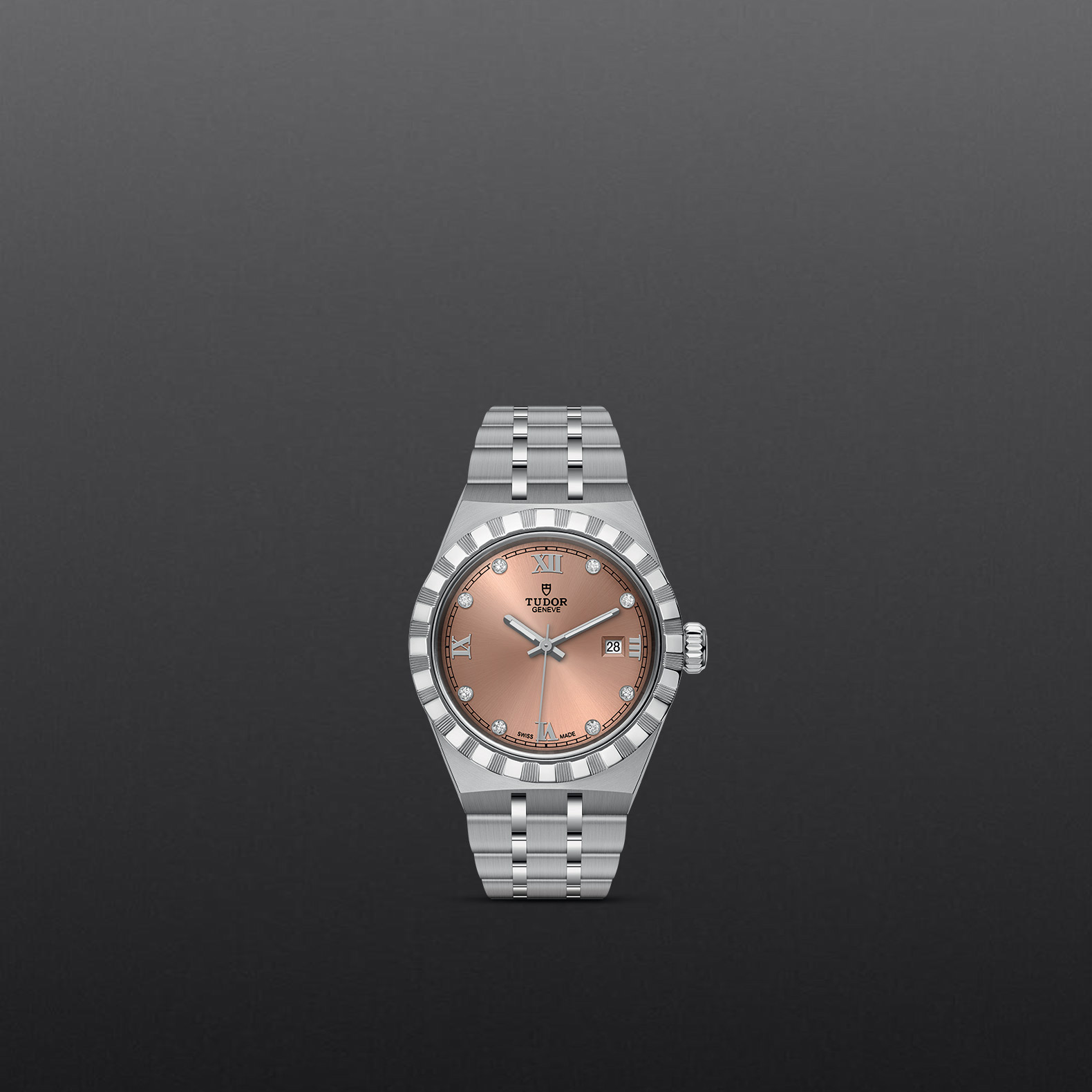 The Tudor Royal range is the epitome of balance between elegance and sportiness. The details of its design give it a unique personality, especially from its characteristic notched bezel with alternating surface polish and cut grooves. The integrated metal bracelet ensures an uninterrupted flow, starting from the case.