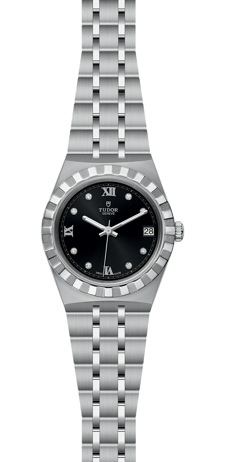 The Tudor Royal range creates a sunray finish on its dials. In black, silver, champagne-colour or blue, this finish, radiates from the centre of the dial, creating a lighting effect and flattering reflections. For the feminine versions, they are also available in diamond-set mother-of-pearl dial. As a final touch, Tudor has added applied Roman numerals to its Tudor Royal watches.