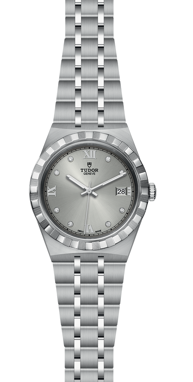 The Tudor Royal range is the epitome of balance between elegance and sportiness. The details of its design give it a unique personality, especially from its characteristic notched bezel with alternating surface polish and cut grooves. The integrated metal bracelet ensures an uninterrupted flow, starting from the case.