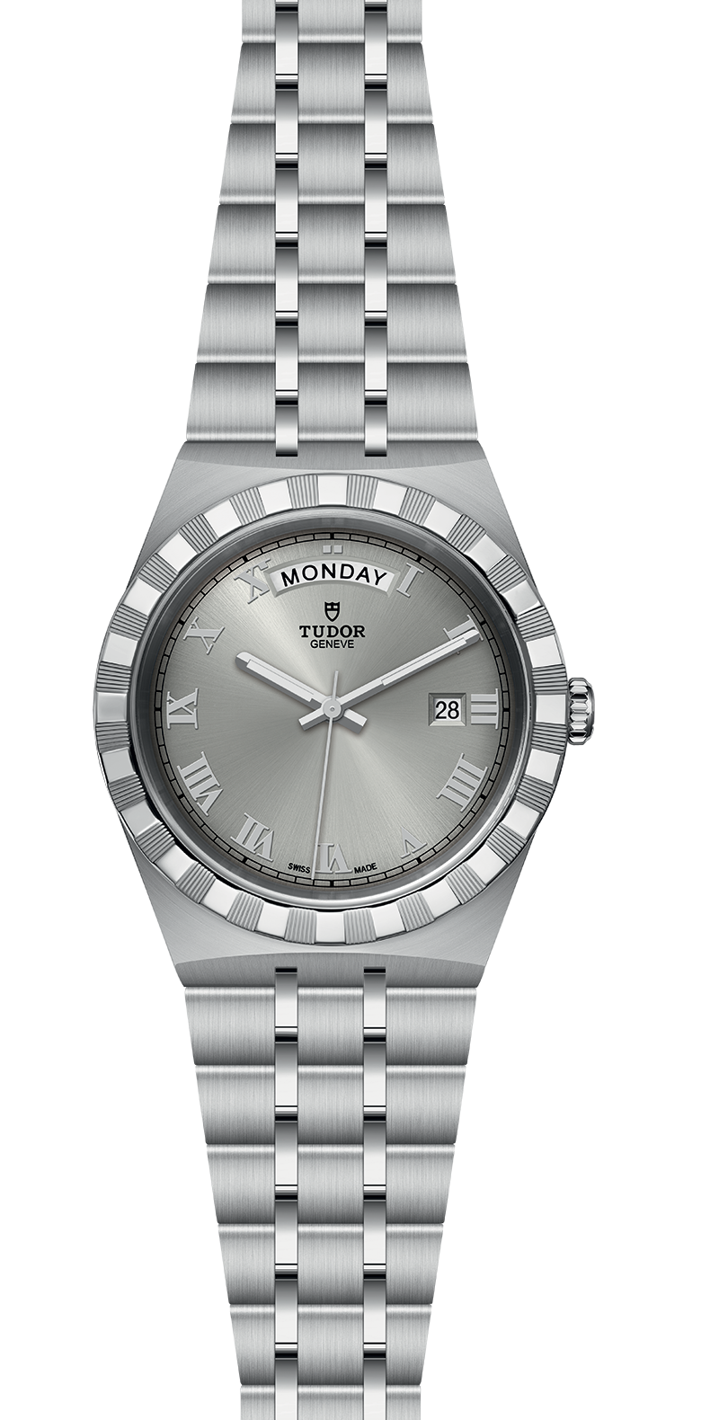 The Tudor Royal range is the epitome of balance between elegance and sportiness. The details of its design give it a unique personality, especially from its characteristic notched bezel with alternating surface polish and cut grooves. The integrated metal bracelet ensures an uninterrupted flow, starting from the case.
